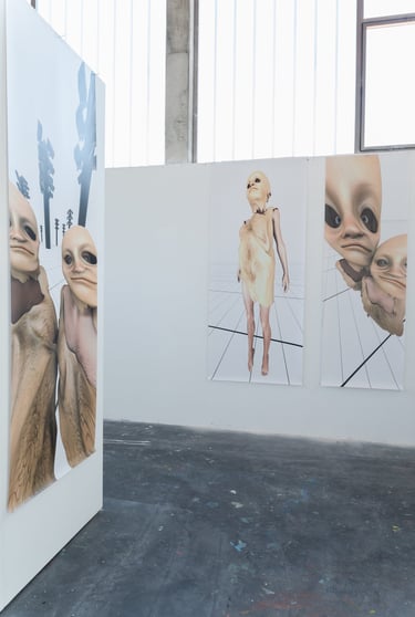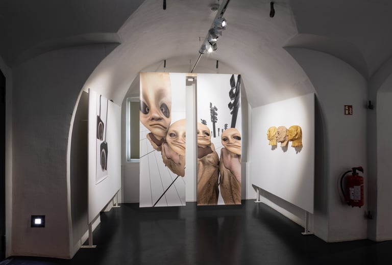 An Installation including PVC Prints and 3 Latexmasks and the shortfilm as the main part of this work.