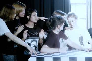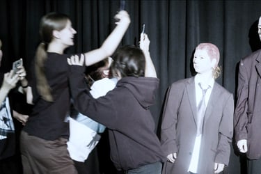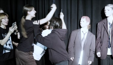 Visually, the film shifts between hyperreal fan culture and uncannily lifeless depictions of the band members, blank stares, rigid expressions and faceless presence reflect an industry in which artists are reduced to surfaces for projection. At the same time, fans lose themselves in ecstatic collective frenzy, dissolving into noise, movement, and mass identity.
